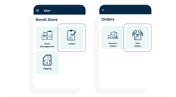 - Tap on the Orders tile followed by the Pick Orders tile.