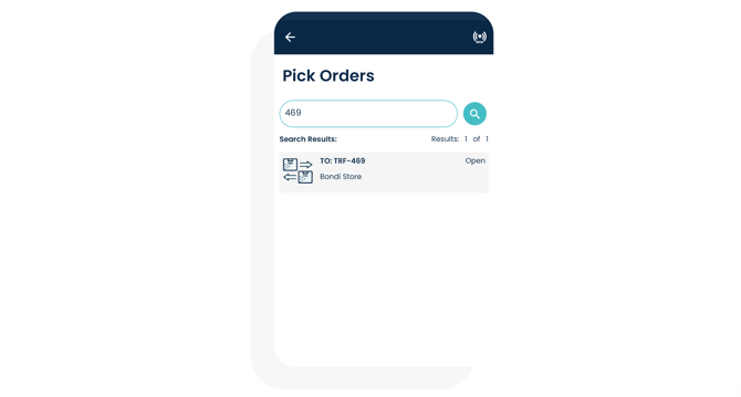 - A list of active pick orders will be listed under the search results. To search for a specific order, type in the order number and click the Search icon.