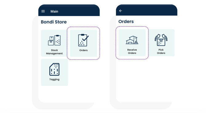 - Tap on the Orders tile followed by the Receive Orders tile.
