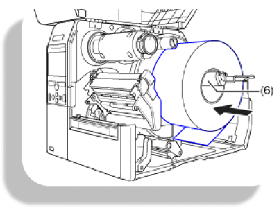 - Load the media in the media holder (6). Make sure that the media roll is all the way in towards the inside of the product.