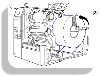 - Pull the media holder guide (3) and media guide (4) away from the product. Turn the knob (5) counter clockwise to release the media guide.
