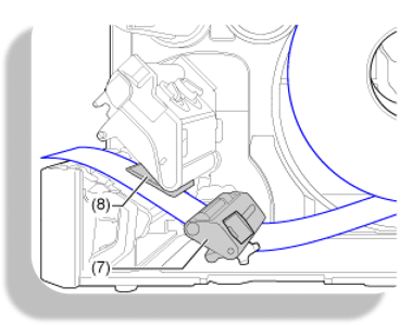 - Pass the media below the media damper (7) and the media sensor guide (8) while pushing the media to inside of the product.