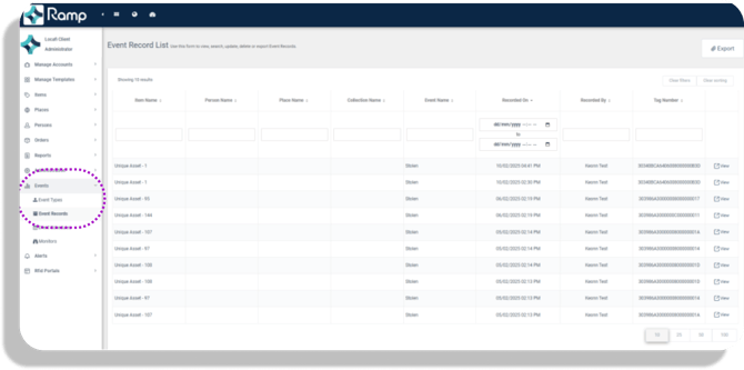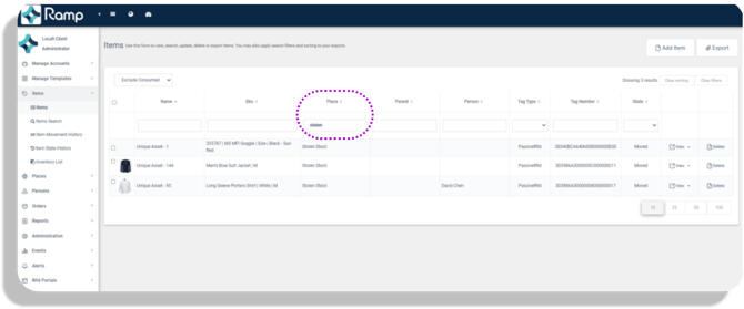 If an active tag is detected, the system’s built-in alarm is triggered and the item is automatically marked as “Stolen” in the Ramp Portal.