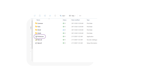 Locate and launch PrnInst.exe.