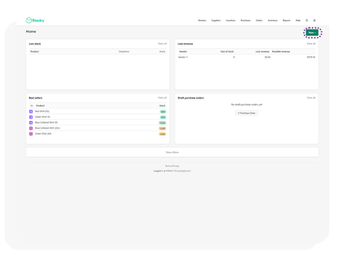 - The stocky app will open. Navigate to and click on New in the top right of the main screen.