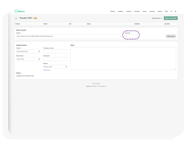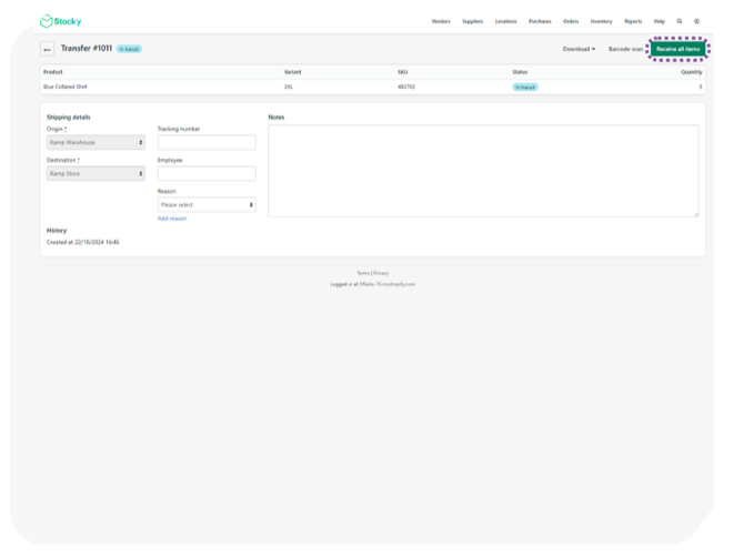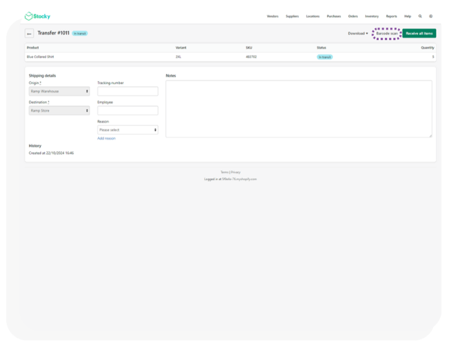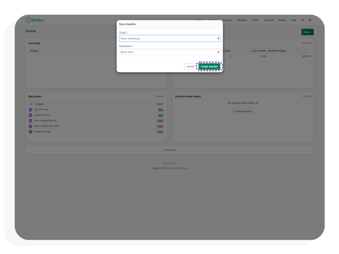Note: Stocky-based transfers are no longer supported. Follow the Transfer Orders with Shopify guide for the updated process when syncing transfers with Ramp.