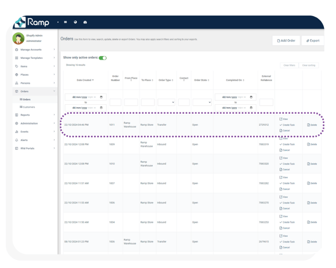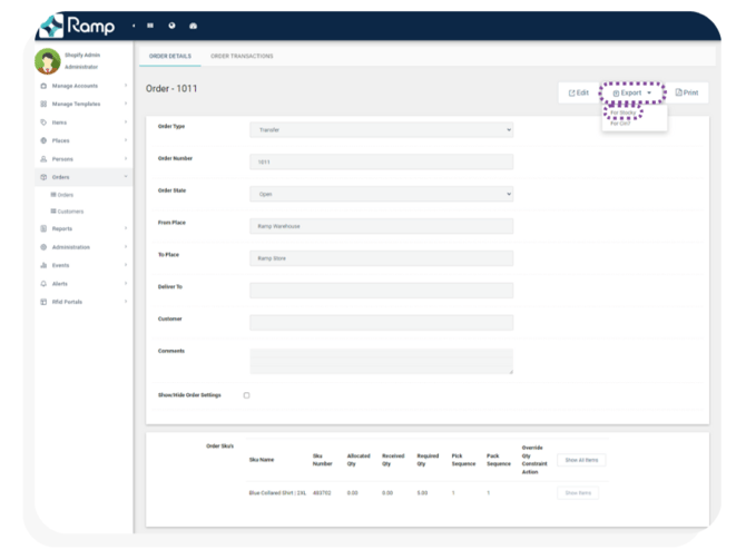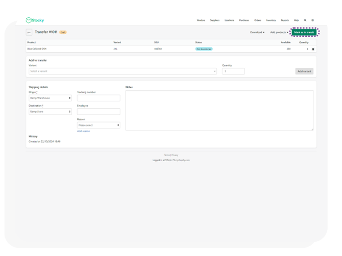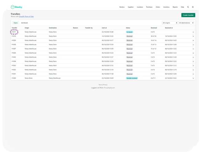 Transfer orders in shopify stocky are automatically synced to the Ramp Database every 5 minutes.