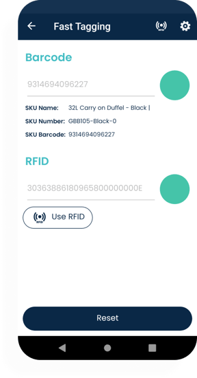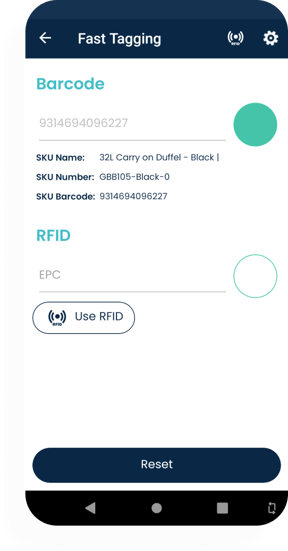 The Fast Tagging functionality allows the user to quickly encode and program an RFID tag to match an existing SKU or product. This is primarily used in use cases where an existing barcode label is already present on a product and we wish to add RFID functionality to the labels.